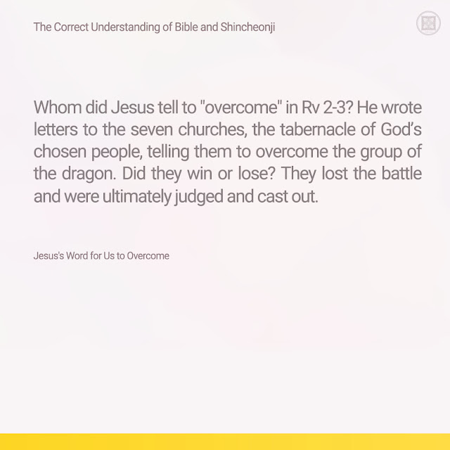 How do you think Jesus, who overcame the world (John 16:33), would feel if he saw this situation today? However, the promised pastor (ref. Rv 2-3, 12:5) has fought and overcome the group of the dragon, ① the dragon was cast out, and ② from this point, the kingdom of God and salvation have come (Rv 12). Yet, the war continues even now, just as we see. Believers cannot claim they haven't seen this. But how can those who do not know the prophecy and fulfillment understand this event, even if they see it? The one thing they excel at is speaking out the word 'heresy.'